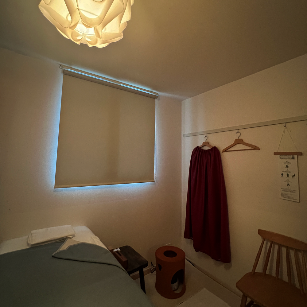 施術ルーム よもぎ蒸しの入り方 ユーカリでリラクゼーション効果をUP 遮光と照明効果で 施術ルーム お一人様限定の施術ルームです。 よもぎ蒸しの入り方もわかりやすいイラストをお見せしながらご説明いたしますので、初めての方もご安心ください。 施術中は窓を遮光し、優しい照明と静かなヒーリング音楽でリラックスしてお過ごしいただけるように準備しております。